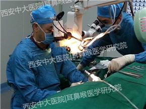 西安新城中大张全安教授在耳部显微镜下实施手术