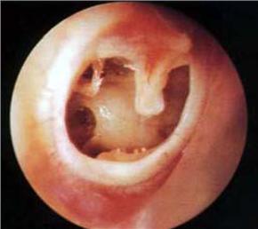 如果胆脂瘤长期没有被治疗,一些细菌毒素或代谢产物会进入内耳,或者胆脂瘤破坏内耳的结构,都会造成感音神经性聋。既有传导性聋,又有感音神经性聋,我们称之为混合性聋。胆脂瘤型中耳炎初起时一般是传导性聋,病变发展会引起混合性聋,到晚期也会全聋。