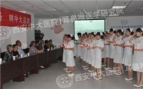 活动的后,西安中大耳鼻喉医院全体护士面对患者整齐列队,手持蜡烛,进行了庄重的宣誓。