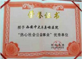 在接受记者采访时,西安中大耳鼻喉医院院长表示:荣获【热心社会公益事业】优秀单位称号不仅是政府层面的一种认可,更是一种鞭策、一份责任。救死扶伤、帮助弱者、热心社会公益事业是我们作为一名医者必须要坚守的使命。