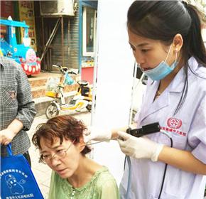 北洞岗小区张大爷正在接受耳内窥镜检查