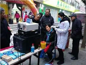 千好百草药店门口设立的临时义诊台前,围满了前来咨询检查的市民。医护人员耐心细致地为市民测血压、测血糖、查体温,做耳鼻喉内窥镜检查,并为市民提出治疗和保健建议,嘱咐大家要合理膳食,适量运动,保持好的心情。