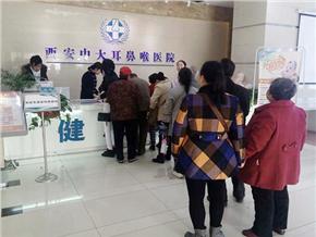 为帮助市民排除健康隐患,提高大家对耳鼻喉疾病的防治意识,西安中大耳鼻喉医院联合西安同一医药店,于方新四路同一药店枣园店门口免费为市民群众体检。3月26日到27日期间,共为近200位市民体检、提供健康咨询并发放健康知识手册。同时对于有到院就诊需要的市民,给与专车接送。